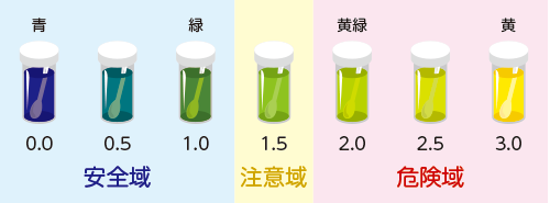 試験液は個人の酸の強さによって色が変わる仕組みになっています。